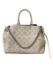 The CHANEL 19 bag, named after a number symbolic of the Maison, features a link chain with silver, ruthenium and antique gold details and an XL clasp in the form of a leather-woven double-C logo.